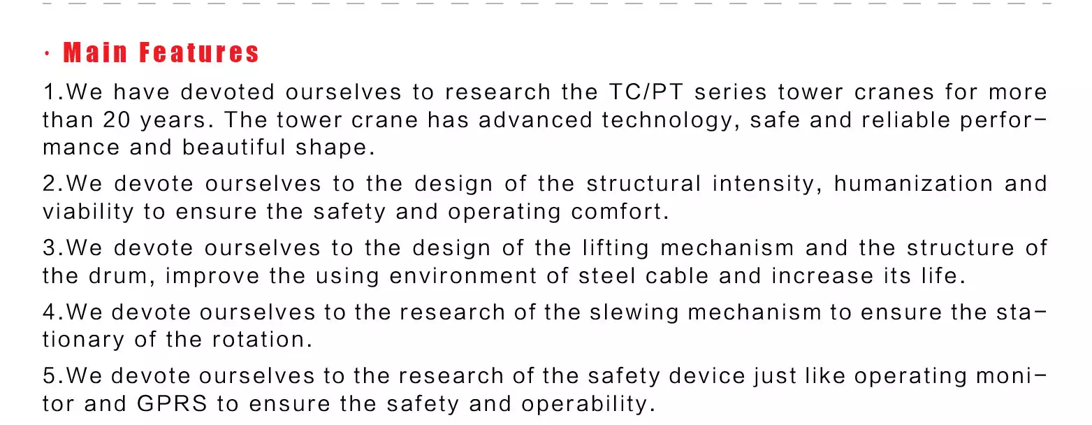 A: Generally, our equipments are the most durable type in the industry, this is also the feature of tower crane for most of our customers at home or abroad.